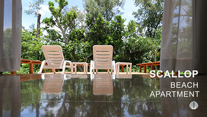ウッドデッキで一休みしたり、食事を楽しんだりと、